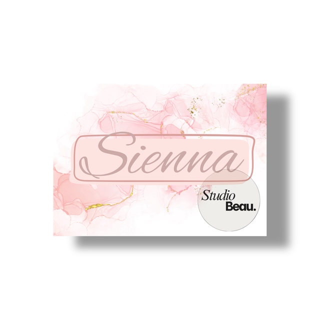 The board features an elegant marble-effect finish with a soft, neutral aesthetic, complemented by a personalised name detail for a truly bespoke touch. Perfect for dressing tables, salons, or as a thoughtful gift.